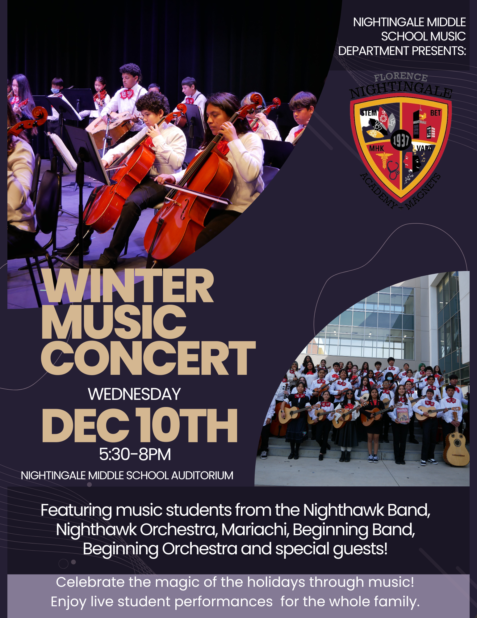 You are warmly invited to join us for our Winter Music Concert on Wednesday, December 10th from 5:30–8:00 PM in the school auditorium!