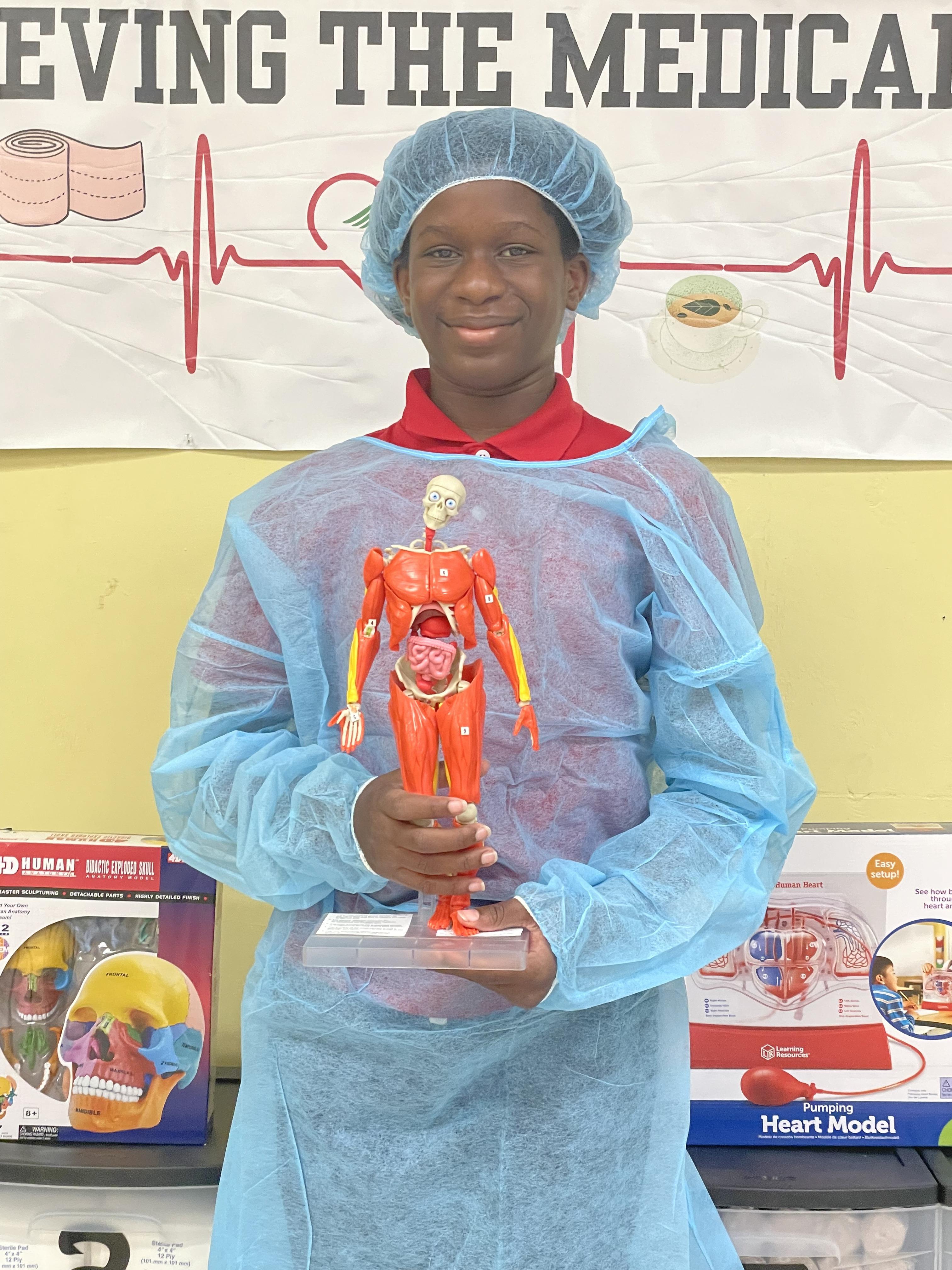 Medical ClinicMHK's lead teacher created a medical clinic, a designated space connected logically and conveniently to the MHK elective classroom. A corridor allows students to enter and students are able to apply the reading, theory, and research learned in their classroom. Students simulate conditions of working nurses and health workers, and while the MHK clinic is not fully equipped with comprehensive medical equipment, its existence is a phenomenal accomplishment given many years of parent requests to provide students with an MHK exclusive lab-like and clinic-like facility. A visitor entering the MHK clinic will see rows of student projects and, overall, the clinic offers students the space to integrate science and art as they, for example, work on understanding the functions of the heart by creating both paintings and clay models of the heart.
